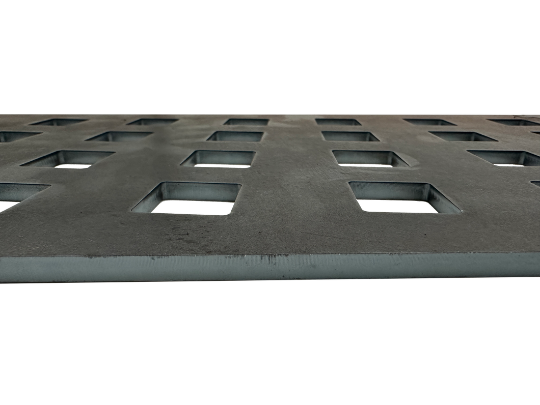 Expertly designed for SteelFreak tapered and rectangular fireplace grates, our Super Duty Ember Retainer provides unparalleled durability with its custom-fit and super heavy duty 1/4 inch plate construction. Thanks to the strategically placed one inch square holes, this ember retainer keeps the hot coals close to the logs for longer. This helps the firewood burn more completely while still allowing for proper airflow.