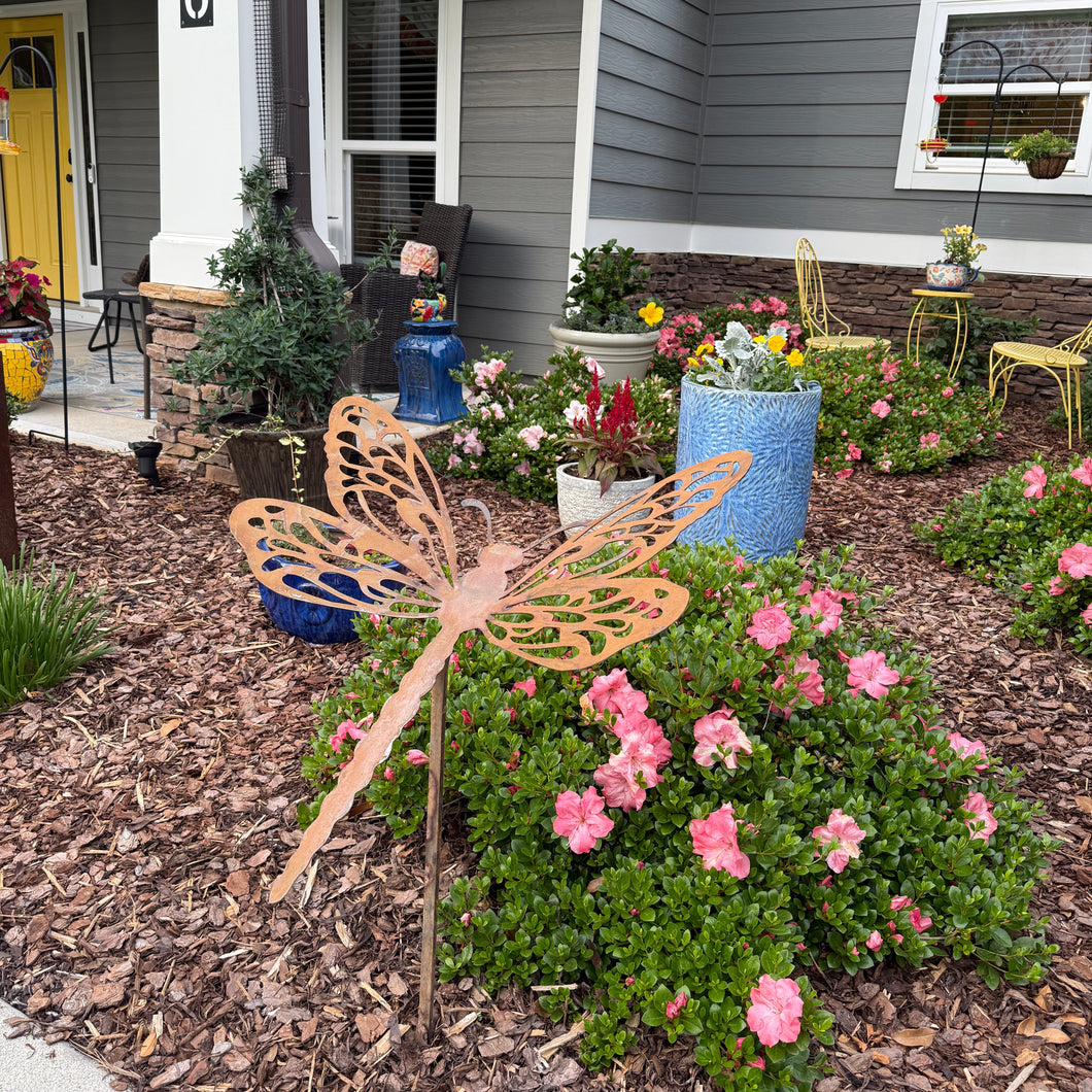 Add a dash of whimsy to your outdoor space with our Dragonfly Yard Art Installation. Crafted from 14 gauge steel in the USA, this eye-catching piece is full of intricate details that will take your yard to new heights. Bring a unique, playful touch to your yard with this not-so-ordinary yard ornament!
