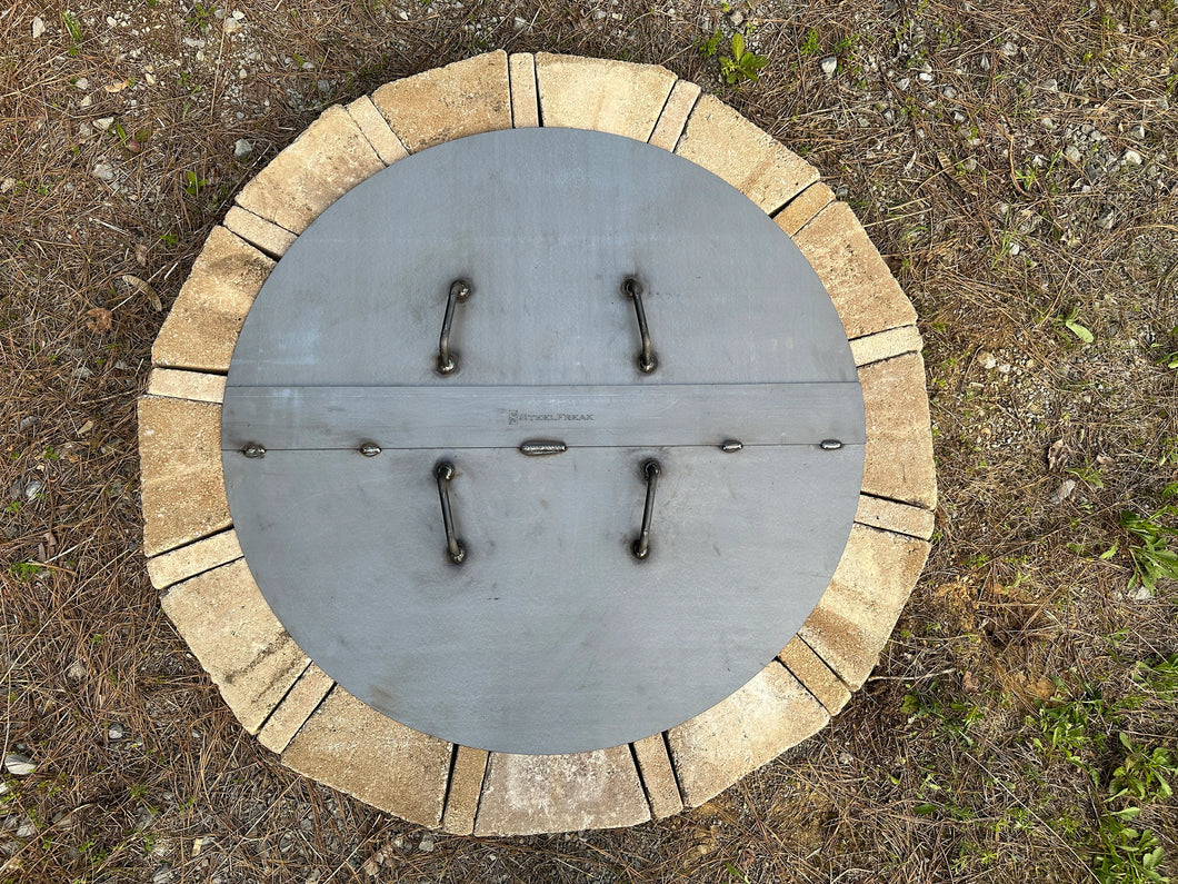Please note these covers are made from raw, uncoated steel. Rusting of an uncoated raw steel fire pit cover is both inevitable and expected. This will not significantly affect the longevity of our covers as they are built from thick, heavy duty steel and designed to be left exposed to the elements. If left uncoated, the entire cover will develop a rust patina. Please also be sure to fully extinguish the fire before placing the lid on the fire pit as excess heat can cause the lid to warp.