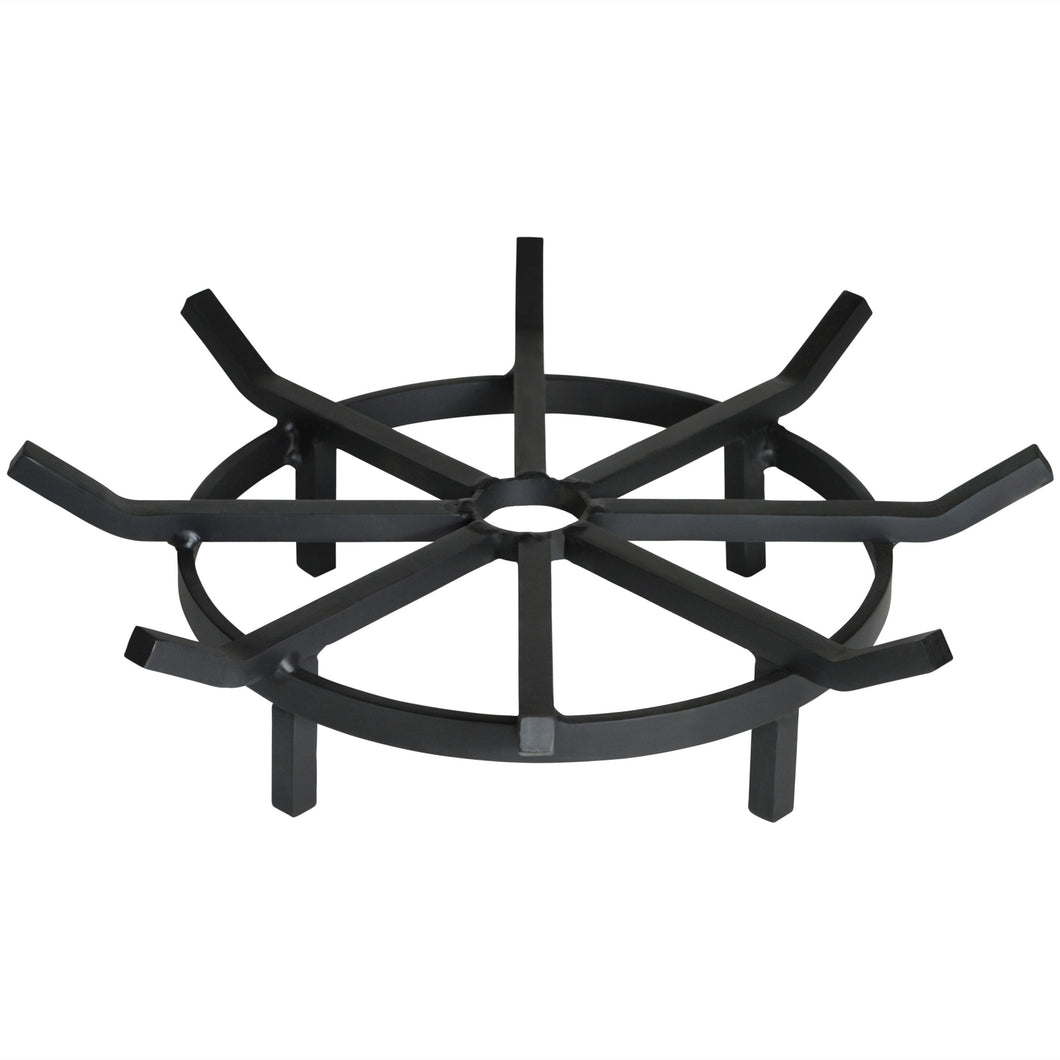 The Super Heavy Duty Wagon Wheel Grate series is built from 3/4 inch thick square-bar steel for extreme durability. Their innovative wheel-and-spoke shape lifts firewood off the ground to improve airflow to the fire while the flared tips help contain logs safely on top of the grate.